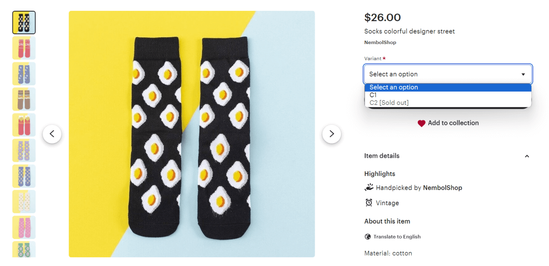 As a consequence, your potential buyers will see the product again in your Etsy storefront and will be able to purchase it. Of course, only the newly available variation, while variations not restocked will be visible but signed as “out of stock” according to your “Sold items” settings in Etsy (shown above).